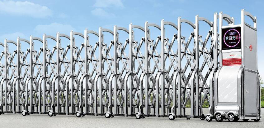伸縮門(mén)(Retractable door),就是門(mén)體可以伸縮自由移動(dòng),來(lái)控制門(mén)洞大小、來(lái)控制行人或車(chē)輛的攔截和放行的一種門(mén)。伸縮門(mén)主要由門(mén)體、驅(qū)動(dòng)電機(jī),滑道、控制系統(tǒng)構(gòu)成。門(mén)體采用不銹鋼及鋁合金專(zhuān)用型材制作,采用平行四邊形原理鉸接,伸縮靈活行程大。驅(qū)動(dòng)器采用特種電機(jī)驅(qū)動(dòng),蝸桿蝸輪減速,并設(shè)有自動(dòng)離合或手動(dòng)離合器,自動(dòng)離合停電時(shí)可自動(dòng)啟閉,手動(dòng)離合停電時(shí)可手動(dòng)啟閉,控制系統(tǒng)有控制板,按鈕開(kāi)關(guān),另可根據(jù)需求配備無(wú)線遙控裝置。